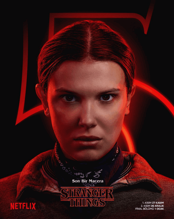 Eleven / Jane Hopper (Millie Bobby Brown): Telekinezi yeteneğine sahip, dünyayı birkaç kere kurtarmış bir genç kız, Mike’ın kız arkadaşı.